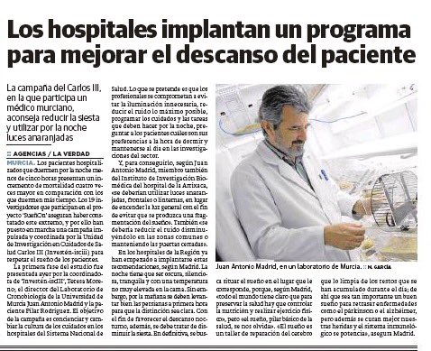 LA VERDAD MURCIA (2016): «Los hospitales implantan un programa para mejorar el sueño de los pacientes»